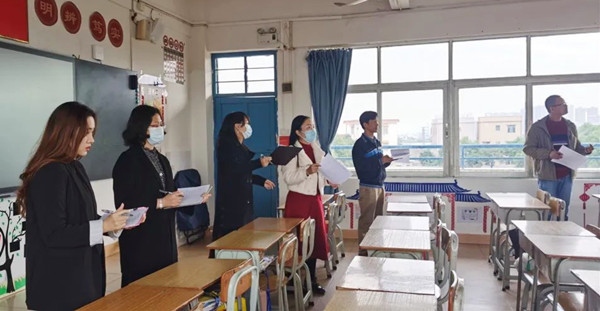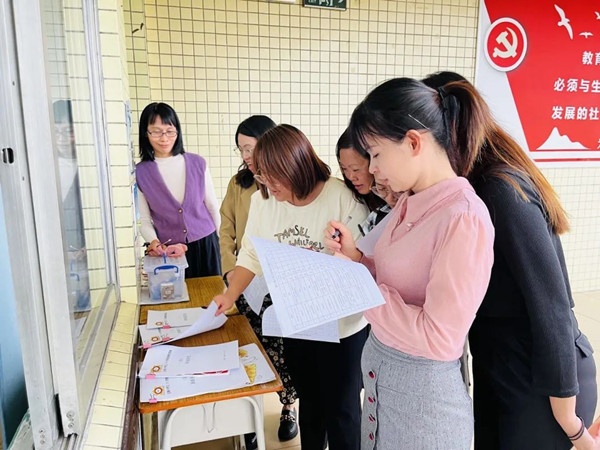 評比前,各班級老師帶著學生們認真打掃教室,力求把整潔美觀的課室,各具特色的班級風采展現出來。11月1日下午,初選開始。德育處唐慧主任組織各班級班主任從教室整潔、展板墻壁、圖書角、衛生角、黑板報、班級特色六大方面對班級文化建設進行現場打分,計算各班成績,并備注了各班級的優點和不足。