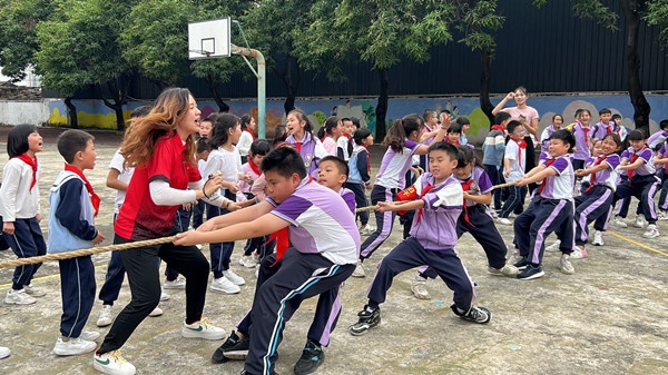春風(fēng)吹拂的下午,迎來了激動人心的團體比賽。為了班級榮譽,每個班的同學(xué)都團結(jié)一致,積極參與。“乒”盡全力拔河比賽可謂是重頭戲。雙方隊員全神貫注,緊緊抓牢手中的繩子,勒繩下腰,重心下降,咬緊牙關(guān),加足馬力,團結(jié)一心,向后用力。加油聲、歡呼聲、吶喊聲,燃爆全場。