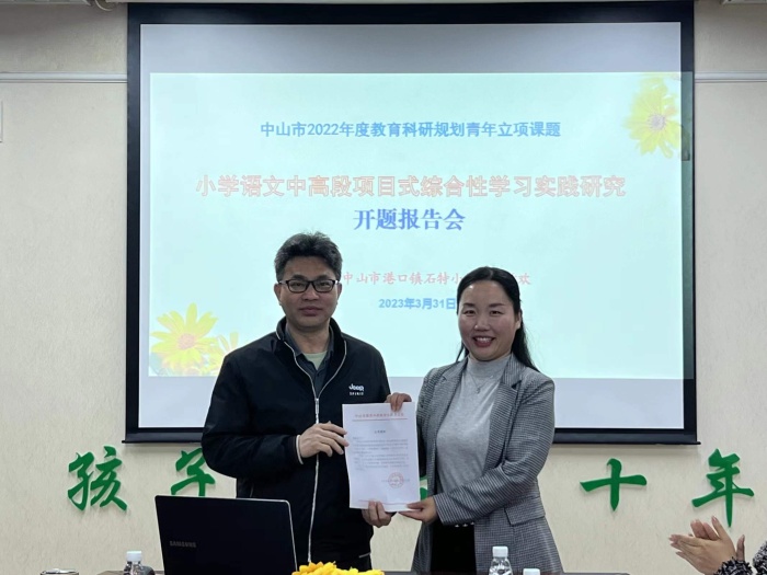 春意正濃,“研”途花開,靜待碩果。為提升課題研究工作的實效,促進課題研究工作的順利進行,近日,港口鎮(zhèn)石特小學(xué)舉行了市級教育科研立項課題《小學(xué)語文中高段項目式綜合性學(xué)習(xí)實踐研究》開題報告會。本次開題活動特別邀請了中山市教育教學(xué)研究室小學(xué)語文教研員梁雪菊老師、港口鎮(zhèn)教育與體育事務(wù)中心張育文主任、劉浩平副主任、蘇彩南老師等專家蒞臨指導(dǎo)。石特小學(xué)蘇少麗校長、課題組全體成員參會,會議由教務(wù)處詹婉瑩副主任主持。