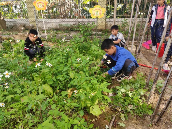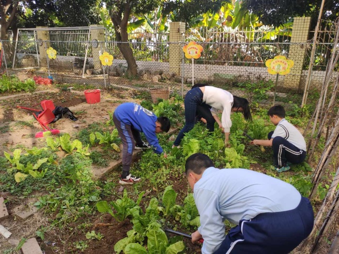 各班級派出三名學(xué)生代表,有序來到學(xué)校勞動基地,迅速投入到熱火朝天的勞動中,場面如同一場緊張的"除草大賽",一班賽過一班。