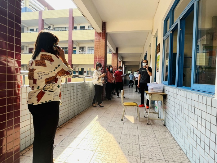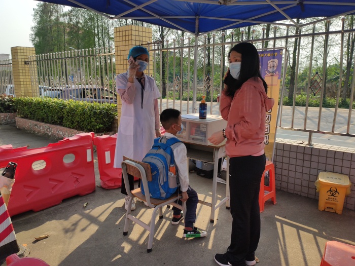 學(xué)校德育處梁廣平主任提前將演練方案發(fā)給老師們研讀,并對方案進(jìn)行了詳細(xì)的解讀,讓老師們對演練過程及細(xì)節(jié)有了全面的了解。活動主要由“學(xué)生返校入門測溫”“上課發(fā)現(xiàn)異常學(xué)生應(yīng)急處置”和“發(fā)現(xiàn)學(xué)生為新冠肺炎病例”三部分的場景模擬組成。實(shí)戰(zhàn)演練從學(xué)生入校門接受晨檢開始,對晨檢落實(shí)、發(fā)現(xiàn)病例、詢問病情、病例隔離、啟動應(yīng)急預(yù)案、登記報告、聯(lián)防聯(lián)控、消毒通風(fēng)等重點(diǎn)環(huán)節(jié)進(jìn)行了模擬。整個演練過程緊張有序,有條不紊,情境逼真,預(yù)設(shè)合理。最后,德育處梁廣平主任對學(xué)校的疫情防控工作進(jìn)行了部署,他提出:對新冠肺炎疫情的防控不能有絲毫的麻痹大意,全校老師要進(jìn)一步細(xì)化落實(shí)各項(xiàng)防控工作,做好校園的常態(tài)化疫情防控工作。