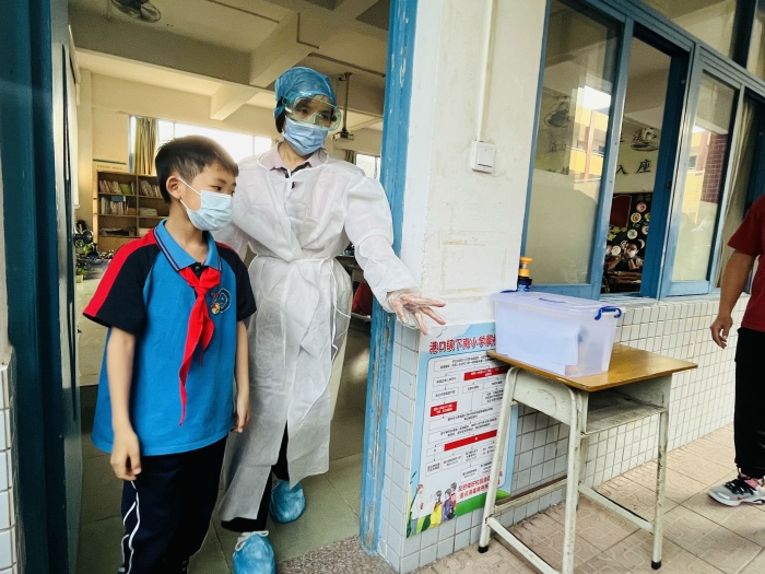 為扎實(shí)做好疫情防控,進(jìn)一步規(guī)范、優(yōu)化新冠肺炎疫情防控工作,檢驗(yàn)學(xué)校應(yīng)急預(yù)案的科學(xué)性和可操作性,確保突發(fā)事件得到及時有效處置,保障良好的教育教學(xué)秩序,2022年4月6日下午,港口鎮(zhèn)下南小學(xué)本著“嚴(yán)格、扎實(shí)、有序、規(guī)范”的原則,在校園內(nèi)進(jìn)行“清明節(jié)”后返校疫情防控應(yīng)急處置演練。
