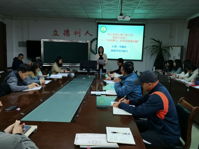 為了提升學校老師撰寫校園通訊稿的質量,提高學校通訊稿的發布率,2022年3月28日下午,在港口鎮下南小學三樓會議室舉行了以“如何撰寫、發布校園通訊稿”為主題的講座。全體教師均參加了本次講座。