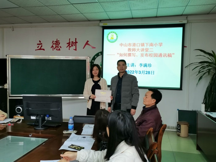 講座的尾聲,李老師為老師們講解了通訊稿的發布方法,同時還提點了不少的細節。最后由管德豐校長為她頒發了證書,并作了講座總結。管校長表示,通過此次活動,老師們對于通訊稿的撰寫有了全新的認識,對于寫作也有了新的思路與方向,相信學校今后必定會出現更多優秀的通訊稿。