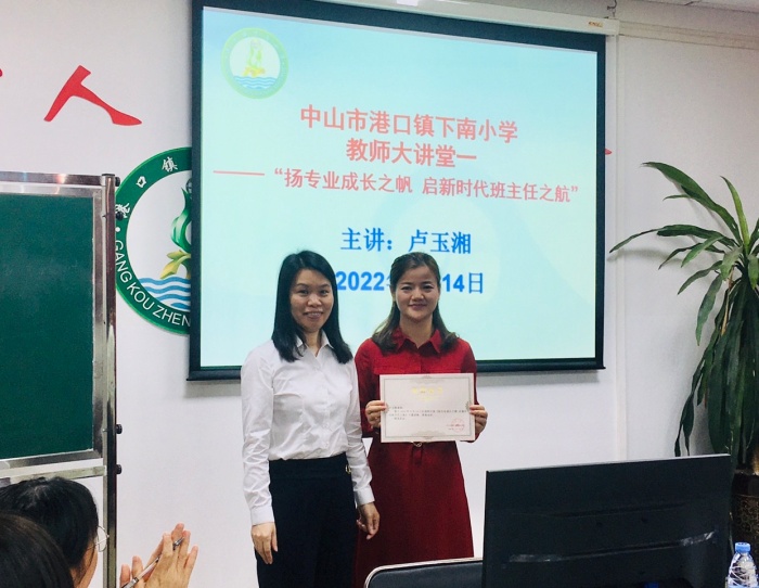 為促進港口鎮下南小學教師專業成長,提高班主任管理能力,“下南小學教師大講堂”誠邀民主小學荷馨班主任工作室主持人盧玉湘老師,聯同本校優秀教學能手林子健老師在校開展專題講座交流活動。