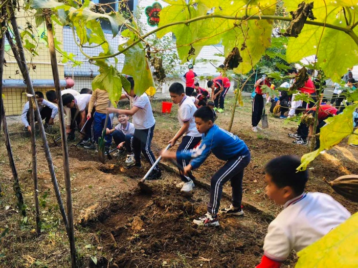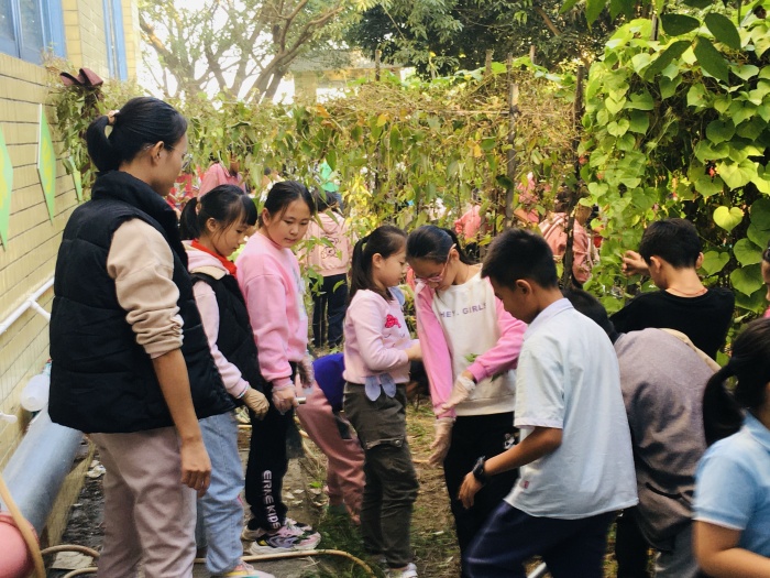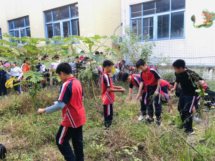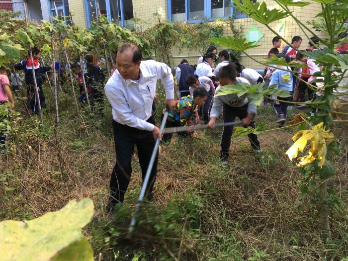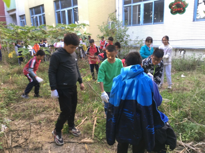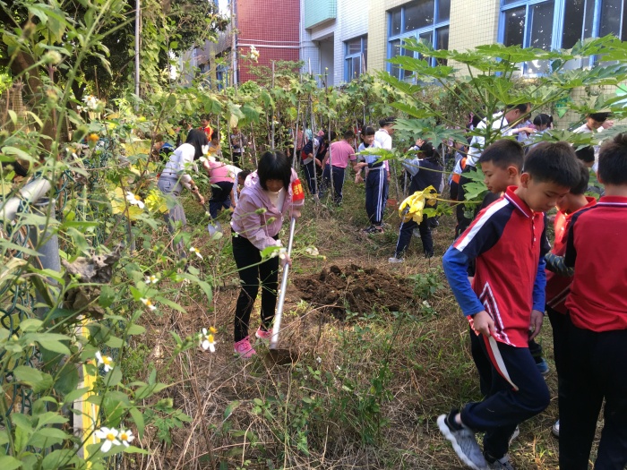 第二個是勞動實踐基地的除草、翻地活動,由三2班、4—6年級的同學參加。由于菜地面積不大,每班大約派20個學生代表參加實踐。在梁廣平主任先給學生們強調勞動的注意事項,再由各班主任帶領學生們勞作。菜地雜草叢生,同學們毫不畏懼,有的徒手拔,有的用小鏟子鏟,有的用鋤頭鋤,有的負責把雜草搬走,大家齊心協力,菜地很快就被清理干凈。接著是翻地的工作。有個別學生還不能熟練地使用鋤頭,班主任就進行悉心的指導。學生們的額頭滿是汗水,但也擋不住他們對勞動的好奇與熱愛。最后整個勞動實踐基地都被收拾得平平整整,為下周的種植活動打下了基礎。