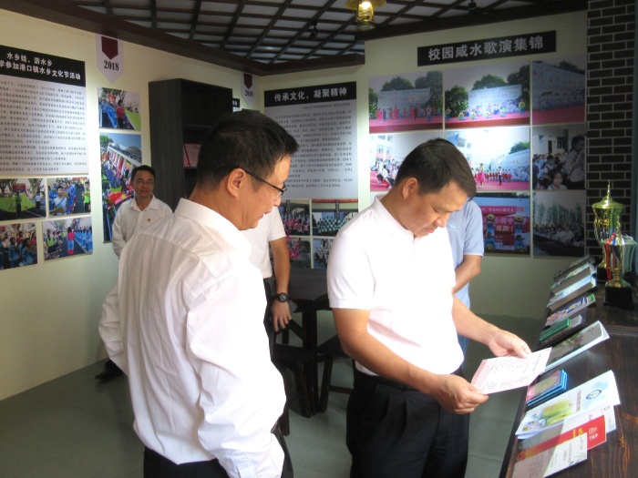 蘇銳賢副鎮(zhèn)長一行巡視了學(xué)校環(huán)境,深入了解學(xué)校開學(xué)以來的各項(xiàng)工作以及學(xué)校運(yùn)動(dòng)場(chǎng)改造的進(jìn)度,還參觀了學(xué)校咸水歌陳列廳,聽取秦聲通校長關(guān)于學(xué)校辦學(xué)特色成果的匯報(bào)。蘇銳賢副鎮(zhèn)長表示,自1986年在下南小學(xué)畢業(yè),重回母校,感觸良多,為下南村現(xiàn)今能擁有這么一支優(yōu)秀的教師隊(duì)伍深表欣慰,對(duì)學(xué)校的辦學(xué)特色以及教學(xué)所取得的成績(jī)予以充分肯定。