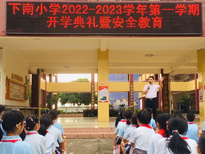 生命安全至關重要。緊接著,下南小學的陶嘉駿主任對全體師生進行安全教育,重點講防疫、防溺水、交通等方面的安全知識,提醒全體同學:安全第一,有安全才有學習。
