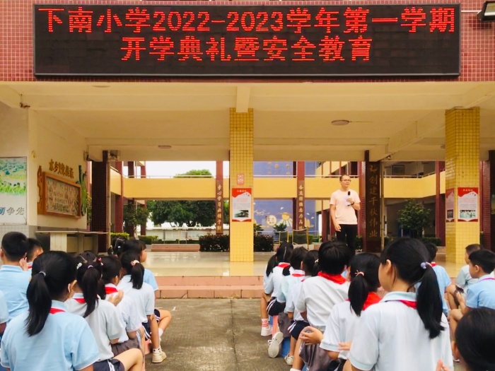 秋風送爽,在這象征著收獲和放飛夢想的季節里,港口鎮下南小學又迎來嶄新的一學期。2022年9月1日上午8點,下南小學全體師生齊聚在操場,隆重舉行了2022-2023年度第一學期開學典禮暨安全教育。