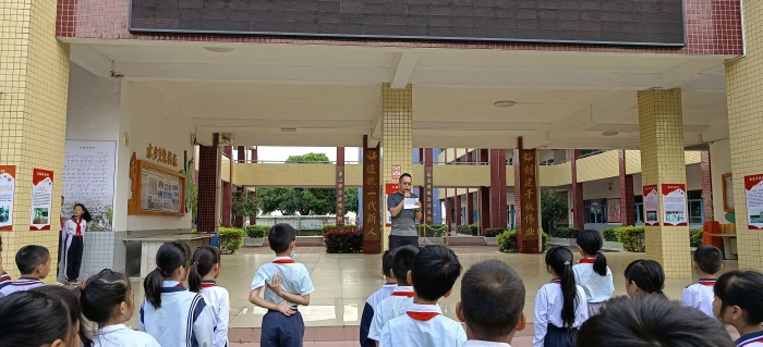 在學校德育處的精心安排和組織下,每周一的升旗儀式新增了一個師生展示環節,學生才藝展示環節還有現場評委打分、點評。教師圍繞一個主題進行演講,對孩子們進行教育。學生展示環節以班級為單位,結合班級特色、學生才藝進行展示,有的表演歌唱、有的表演魔術、有的表演古詩吟誦,形式豐富多彩。