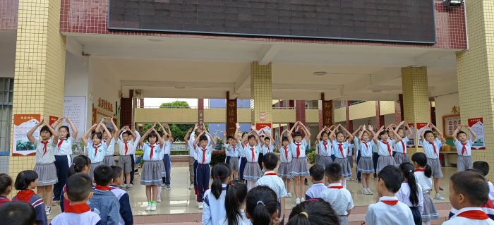 為給全校師生搭建自我展示的舞臺,展示學校的教育風采,豐富該校師生的校園文化生活,同時調動全校師生積極參與到教育活動中來,培養師生欣賞美、創造美的能力,提高學生的綜合能力。港口鎮下南小學開展升旗儀式展示活動。