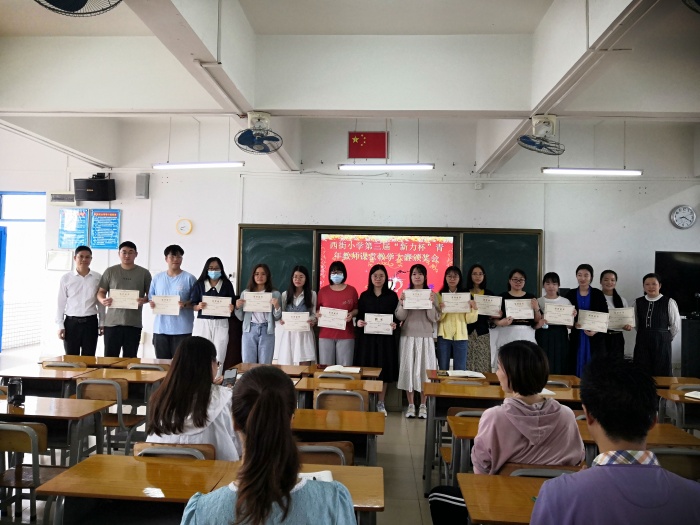 經過三天的激烈角逐,施秋怡、楊楚楚、曹子慧、梁志津、曹霞5位老師榮獲一等獎;張玉媚、伍曲、謝沛桃、梁佩瑩、林祖德、梁嘉慧、劉麗婷7位老師榮獲二等獎;陳煜婷、葉珊珊、彭敏華、李小連、吳美金5位老師榮獲三等獎。大賽最后,西街小學梁容根校長做了總結發言。梁校長對各位參賽教師的優缺點進行精準點評,并對青年教師的專業成長路指明了方向,鼓勵青年教師要自信、多看書、主動虛心向有經驗的老師請教,提高綜合素養。