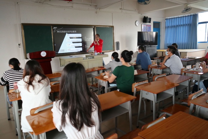 培訓過程中,學校教務副主任李桂華老師為全體教師講解了學校的信息化教學模式,詳細地解讀了學校研修的關鍵能力點、校本研修方案和考核方案,他指出,全體教師要在學校、科組所選定能力點選擇個人研修的3個關鍵能力點進行研修,全體教師要完成線上和線下共50學時的研修任務。學校將組建青年教師信息技術攻堅團隊,開展多層次的信息技術應用培訓活動,整校推進,全員參與。在研修過程中要注重結合課題研究,以課題為抓手,促進學科教學與信息技術應用深度融合,提高教師的信息化教學能力。