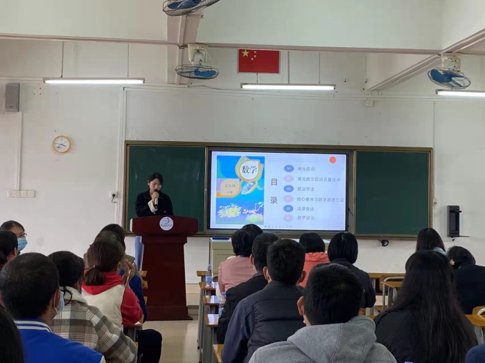 本活動的主要流程:第一環節由陳丹霞老師和李桂華老師分別執教因數與倍數,質數和合數。第二環節由陳丹霞老師做整體的單元解讀。第三環節由陳丹霞老師,呂月歡老師,梁麗鴻老師,廖麗榕老師,李桂華,劉雪穎老師對本單元的六個課時進行說課以及課后反思。第四環節由李桂華老師做以《在實踐中思考,在思考中成長》為主題的專題講座。第五環節由陳丹霞老師為本單元的教學提出教學建議。最后教研組長陳金枝對本次活動做總結性發言,她充分肯定了本次活動。由于時間的關系,蘇彩南老師在會后以聊天的形式給全體數學老師提了一些建議,希望數學老師在課堂上能夠向語文和英語老師學習,借助語言和動作吸引學生的注意力。