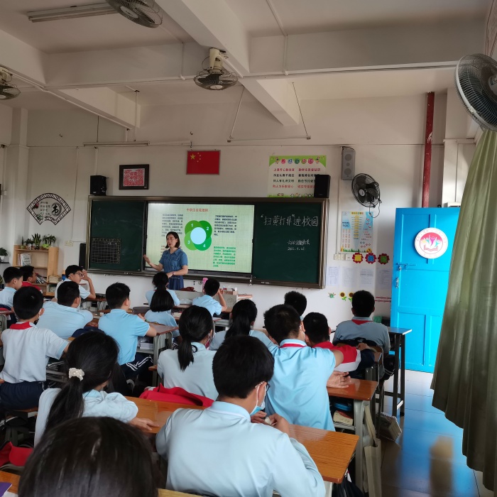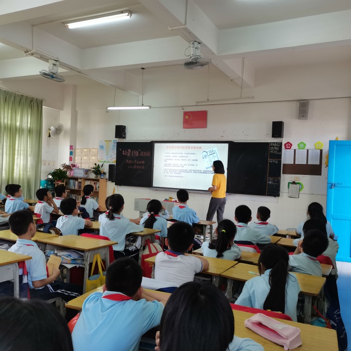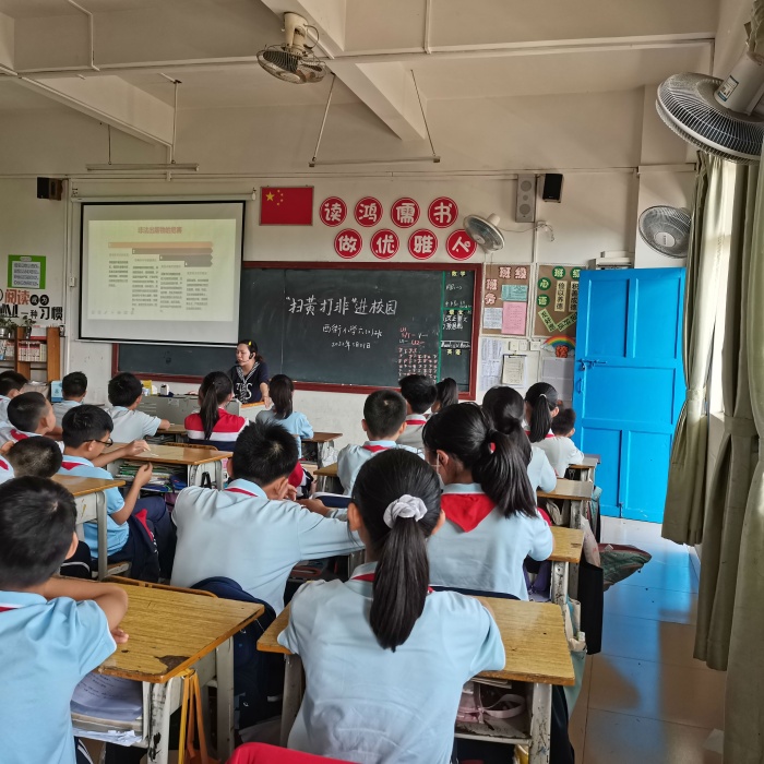 班會課上,老師們首先給同學們普及了什么是“掃黃打非”,并且通過簡單的事例,讓學生明白“掃黃打非”與我們息息相關,并非只是“大人”們的事情,引導孩子們主動抵制“黃”與“非”。隨后,通過動畫片從拒絕盜版和拒絕淫穢低俗信息兩個方面向同學們進行介紹,倡導學生不要購買盜版的書籍、視頻、電影和游戲等,同時,普及了購買盜版和淫穢低俗光碟對小學生身心的危害。