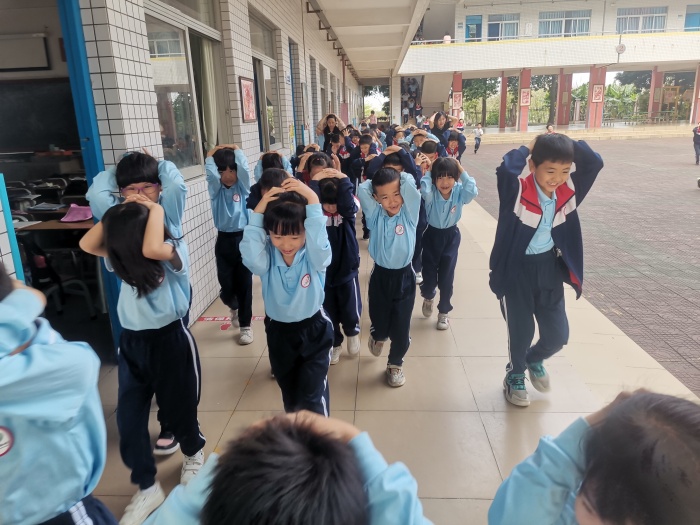 警報聲一響,全校師生進入緊急地震逃生的情境中,各老師迅速趕到疏散崗位,整個疏散過程配合默契,每位老師都將演練作為實戰應對,認真指揮,謹慎操作,確保萬無一失;各班學生在任課老師的有效組織下,雙手抱頭,彎腰前行,學生在最短的時間內,安全有序、快速到達安全地點,隨后各班隨即清點人數向梁麗鴻校長匯報。