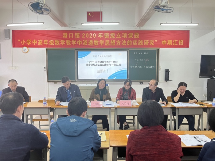11月2日下午,鎮級立項課題“小學中高年級數學教學中滲透數學思想方法的實踐研究”中期報告會在港口鎮西街小學多媒體室舉行。出席本次報告會的人員有港口鎮教育和體育事務中心教研專干吳濤濤老師、港口鎮中南小學丘茶芬校長、港口鎮西街小學梁容根校長、徐艷麗副校長、李桂華副校長,以及課題組的成員和數學科組的老師。會議由教務處徐艷麗副校長主持。