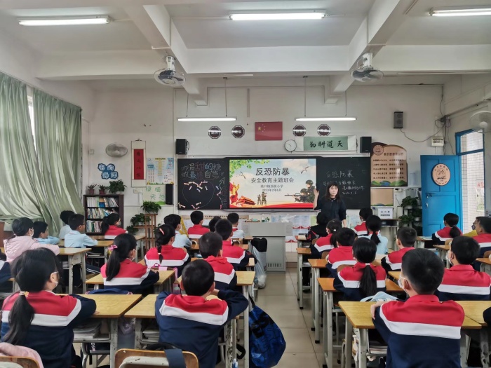 開學典禮結束后,各班中隊輔導員在教室里組織開展了開學第一課主題班會。老師們分別從返校收心教育、交通安全、心理健康教育、防溺水教育與反恐安全教育等方面引導同學們盡快適應從寒假生活向學校生活的轉變,調整心態,盡情享受學習和豐富生活。