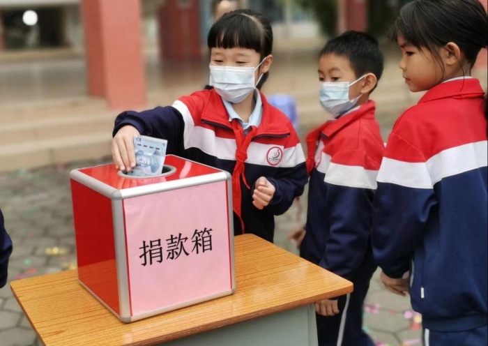 最后,為積極響應2023年中山慈善萬人行捐款活動,德育處梁雪芳副主任宣讀《中山慈善萬人行》倡議書。贈人玫瑰,手留余香。全校師生們發揚中山博愛精神,紛紛在捐款箱里投進自己那份真誠的愛心,盡自己微薄之力,傳遞正能量。