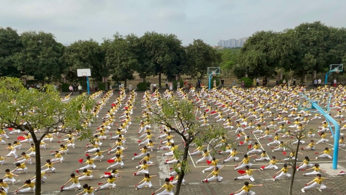 隨著音樂(lè)聲響起,同學(xué)們快速地整裝列隊(duì)來(lái)到操場(chǎng)上,家長(zhǎng)們也一起前往,感受西小的陽(yáng)光大課間。伴著輕快的樂(lè)曲,孩子們的扇操盡顯英氣,出腿、揮扇,干脆利落,氣勢(shì)如虹。健美操活力四射,處處散發(fā)著青春的朝氣。八段錦剛?cè)嵯酀?jì),一招一式如行云流水,每個(gè)人都展示出西小學(xué)子健康向上、不屈不撓的精神。家長(zhǎng)們紛紛露出贊賞的眼神,給予高度認(rèn)可。
