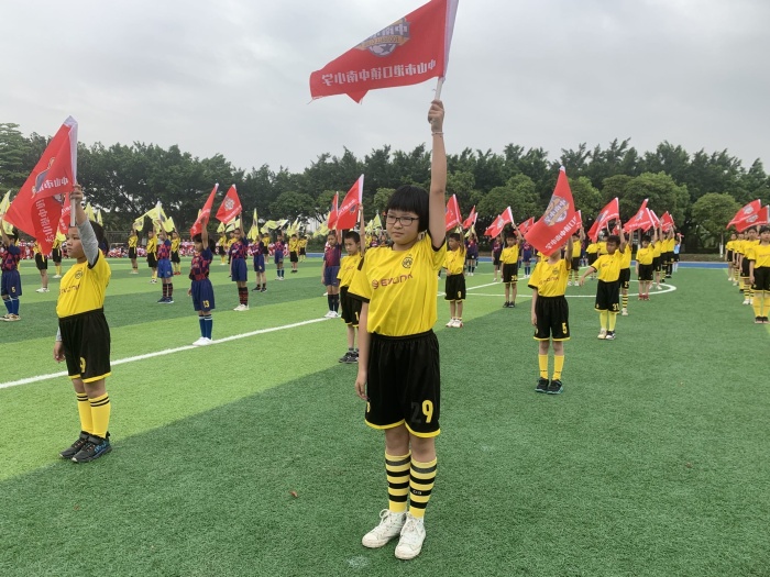 2022年3月30日上午,港口鎮中南小學舉行第四屆足球文化節啟動儀式,16個班級穿著16種代表歐洲足球頂級俱樂部的球衣,在16面足球隊旗的指引下,全校700多名師生齊聚足球場,參加這期待已久的足球盛會。