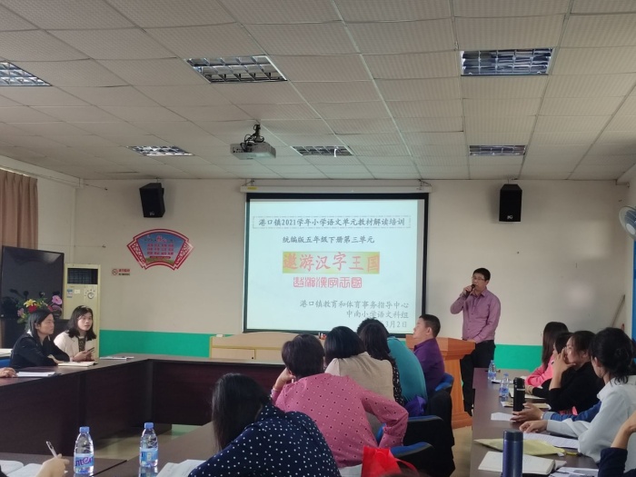 為貫徹落實教育部統編教材編寫理念和語文教學思想,關注單元整體教學,為教師更好地使用統編教材提供研究和實踐。3月2日下午,港口鎮小學語文五年級下冊綜合性學習“遨游漢字王國”教材解讀專題教研活動在中南小學舉行。港口鎮教育和體育事務中心蘇彩南老師及全鎮小學五年級的語文教師參加了此次活動。