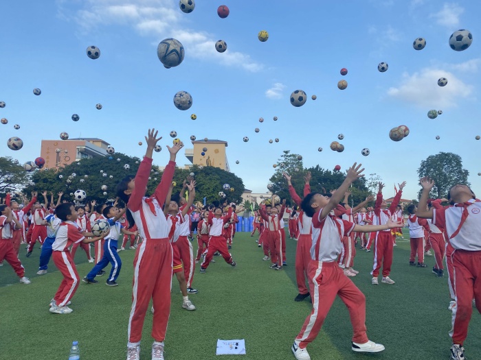 裁判員代表、運動員代表莊嚴宣誓,恪守公平、團結和拼搏是他們的追求!丘校長宣布中南小學2022年秋季運動會現在開始。足球是中南小學的特色項目,所有同學將足球高高地拋起,預示著放飛夢想,筑夢未來!