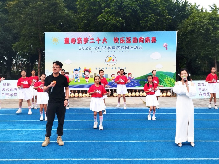 伴隨著鏗鏘有力的《運動員進行曲》,國旗方陣、鮮花方陣、彩旗方陣依次入場。隊員們護擁著鮮艷的五星紅旗拉開此次運動會的序幕,鮮艷的彩旗把運動場裝點成一道亮麗的風景線。李保濤先生和黃施雅主任演唱《活力港口》,六年級同學精彩的舞蹈,給大家帶來一場視聽盛宴。