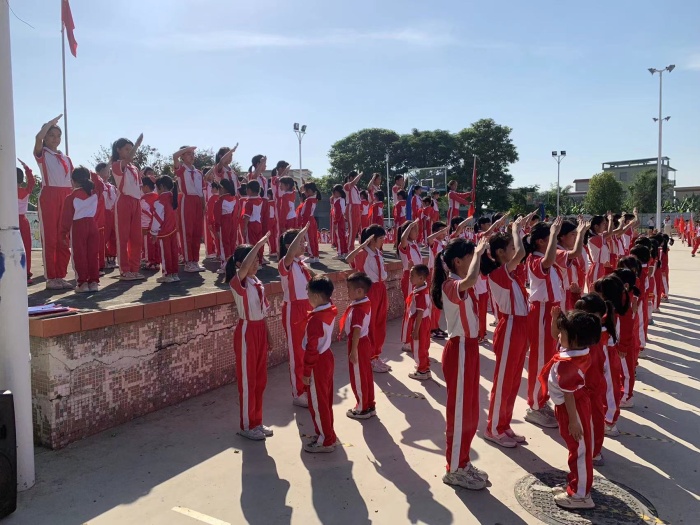 宣誓完畢后,校長(zhǎng)丘茶芬為一年級(jí)兩個(gè)中隊(duì)授予隊(duì)旗。丘校長(zhǎng)對(duì)新隊(duì)員們表示熱烈的祝賀,同時(shí)希望每位隊(duì)員都能夠銘記誓言,好好學(xué)習(xí),好好鍛煉,全面發(fā)展,當(dāng)好社會(huì)主義接班人。