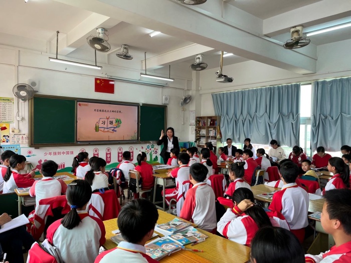 隨后,丘茶芬校長展示《比例的基本性質》的課例。丘校長帶領學生進一步探索比例的性質,引導學生在生活中學數學、用數學,重視學生通過自主探究活動、對比觀察來認識比例的性質,并通過層層遞進的練習進一步鞏固了學生對比例的認識。課堂上,學生們在丘校長的啟發誘導下,用精彩的對話展示了自己的所學所得。