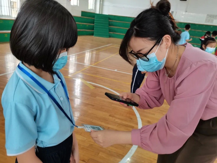 鑒于疫情防控進入常態(tài)化、校園核酸抽測常態(tài)化的現(xiàn)狀,為了提高檢測效率,學(xué)校為每個孩子制作了核酸碼胸卡,將黑色和紫色葵花碼做成一張卡,放入卡套,檢測時佩戴上,方便工作人員掃碼錄入信息,提高檢測效率。