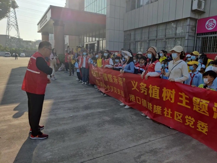 活動開始前,港口鎮中心小學黨支部書記李小健同志的講話強調了植樹意義,并就植樹流程和安全等事項進行講解。
