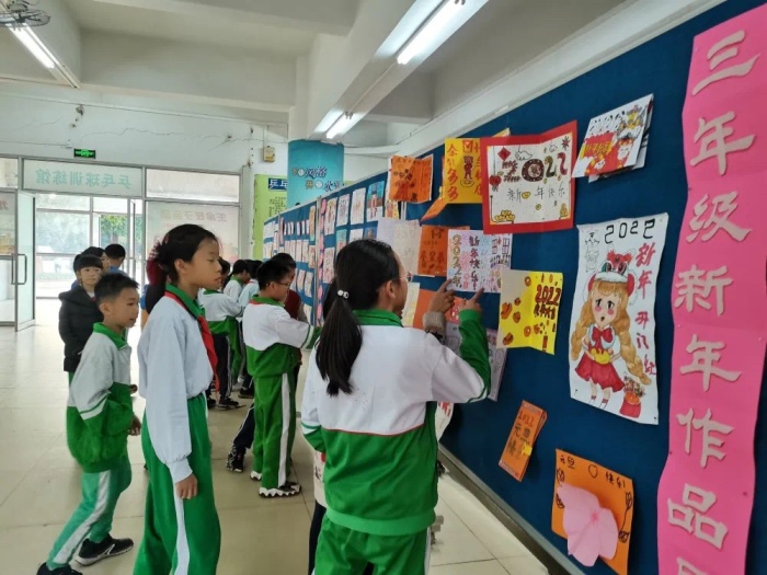 活動前期,在美術(shù)老師的帶領(lǐng)下,各班同學(xué)動手認(rèn)真繪制年畫、新年賀卡、手抄報及新年詩文等。這些畫作正吸引著同學(xué)們紛紛前來觀賞,校園里充滿了濃濃的節(jié)日氣氛。
