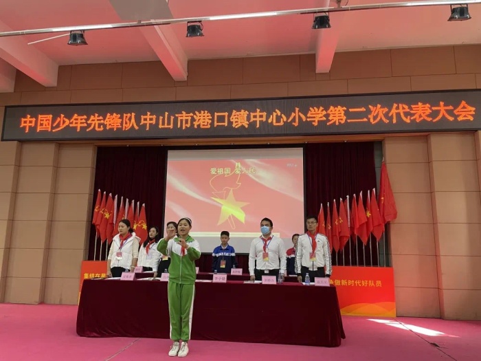 隊旗飛揚,領巾飄動。2021年12月14日下午,中國少年先鋒隊中山市港口鎮中心小學第二次代表大會順利舉行。港口鎮團委書記、少工委李冠良主任,港口鎮少工委夏榮副主任,少先隊總輔導員曾凡宛老師,學校黨支部書記、校長李小健,學校行政、輔導員、教師代表、家長代表以及190名少先隊員代表出席了本次少代會,共同見證了這個莊嚴而有意義的時刻。本次會議由少先隊員劉欣然主持。