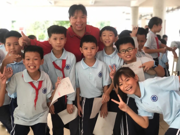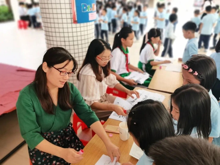 同學們在一個個游園項目前攻克關卡,滿心喜悅地得到點贊后,又歡欣雀躍地去另外的項目沖關了?!拔覀z最默契”很考驗同學們的默契,很多同學對于一些簡單的單詞很快就猜出來了?!拔沂荄r. Know”考驗同學們對英語知識的理解,大家積極地參與到活動中。“讀背多分”(vocabulary)最能體現出同學們的超強記憶力?!安虏挛沂钦l”活動充分融合了游戲和英語學習,讓同學們在玩中學、學中玩?;顒蝇F場不時傳來稚嫩又緊張的答題聲音和回答正確后的歡呼聲。