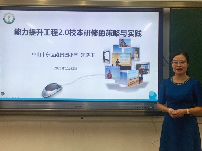 接著,宋曉玉主任以《能力提升工程2.0校本研修的策略與實踐》為題,分享教師能力提升工程2.0行動指南,詳盡講解了雍景園小學(xué)信息技術(shù)應(yīng)用能力提升工程2.0校本研修方案、考核方案以及整校推進的實踐經(jīng)驗,讓與會教師更進一步了解能力提升工程2.0的整體架構(gòu)、研修任務(wù)、實施辦法,明白如何運用信息技術(shù)手段輔助教學(xué),更高效地完成微能力的點研修。