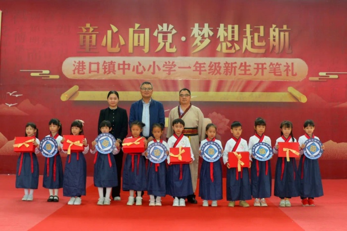 尊師重教承傳統,開筆啟智做棟梁。為大力弘揚中華優秀傳統文化,感受傳統文化的內涵與魅力,激勵學生勤學苦讀、尊師孝親、崇德立志、仁愛處世,2022年11月4日下午,港口鎮中心小學舉行以“童心向黨·夢想啟航”為主題的開筆禮儀式。出席本次儀式的領導與嘉賓有港口鎮教體文旅局劉長路副局長,港口鎮教育和體育事務中心吳菊香德育專干,中心小學李小健校長、黃美玲副校長、梁文玲副書記、蘇藝文副校長、梁潤勝副校長等。