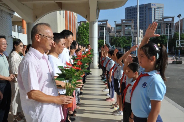 早上八點整,慶祝活動在悠揚的樂聲中拉開了帷幕。首先校長李小健致辭,向全體教師送上節日的祝福,勉勵教師做好教育工作,為社會培育時代新人。隨后,五年級少先隊員代表向全體老師獻花,將最真摯的祝福親手遞交到老師們手中,表達著對老師的感恩之情。接著,教師代表帶來詩朗誦《崇高的事業》,鏗鏘有力的語言,訴說著教師職業的平凡與神圣;教師旗袍秀則更彰顯著新時代教師的風采,表達著傳統與現代交織的獨特魅力。最后德育主任梁銀英為全體師生做節前安全教育,希望全體師生過一個風清氣正、健康祥和的節日。