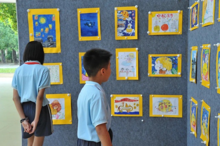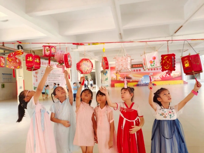 全校還開展“花燈映明月,情意蘊中秋”巧制燈籠活動,一個個燈籠高掛風雨活動區,成了校園一道美麗風景線;各中隊利用隊課開展“吾愛吾師,共度佳節”為主題的主題隊會,隊員們通過詩歌朗誦,講故事,唱歌等多種形式,共同回憶與老師之間難忘的故事,暢談中秋佳話,分享美好。少先隊員們通過拍視頻的方式為老師送上節日的祝福。校園到處充滿深深師生情,洋溢著濃厚節日氣氛。此外,學校還倡導少先隊員與長輩一起過中秋、吃月餅,為長輩送祝福,拍下溫馨的時刻。