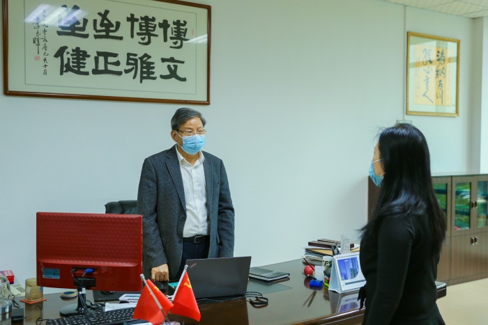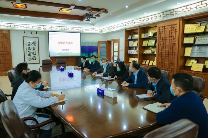 疫情防控醫療保障組、消毒組、安全后勤保障組、信息聯絡組、宣傳和心理疏導組等各小組相關負責人員到校長室開會。會議對目前出現的情況進行分析與工作部署。