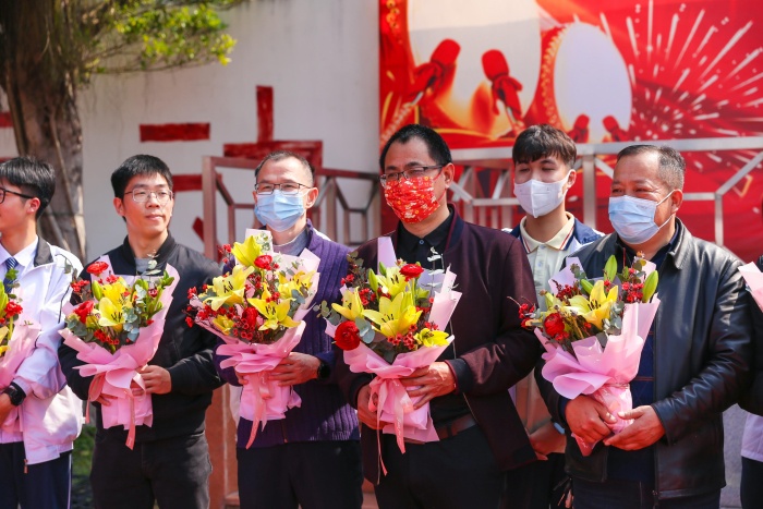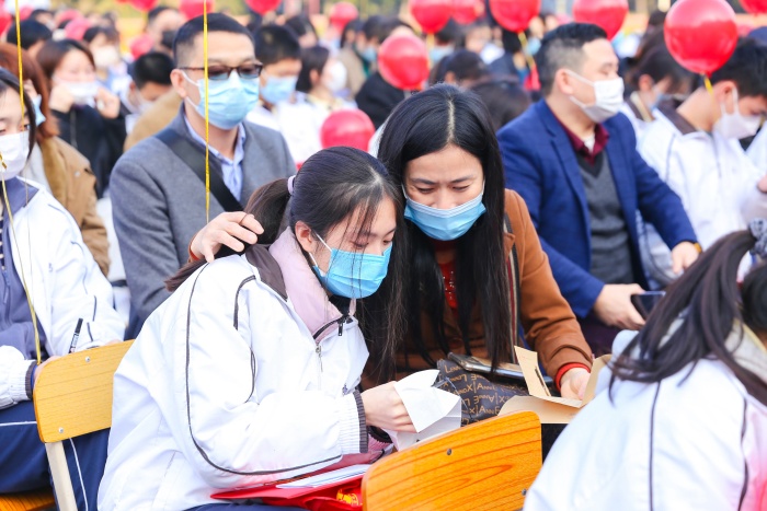 孫校長為同學(xué)們提出三點(diǎn)希望:讓感恩永續(xù)、讓勵(lì)志永恒、讓激情燃燒。鼓勵(lì)同學(xué)們?cè)趥鋺?zhàn)高考的路上,相信自己的優(yōu)秀,創(chuàng)造自己充滿陽光的未來!