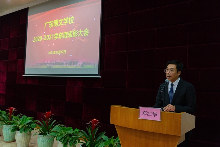 最后,學校董事長鄧江華代表董事會發表講話,他充分肯定了過去一年全校教職工的辛勤工作,勉勵大家抓住機遇,乘勢而上,把博文打造成全國有名、廣東知名、中山著名的一流品牌學校。