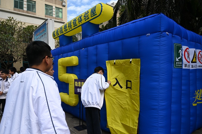 區別于簡單的安全教育講座課堂,本次活動以游園打卡的形式進行安全知識的趣味學習體驗,創意新穎,寓教于樂。活動現場以家居隱患排查屋和火災逃生體驗屋為主背景,分別布置了觸電體驗、防護用品、應急救護、模擬滅火等主題學習區域。宣講員以班級為單位進行分組,組織學生逐一體驗,同學們積極穿梭在這幾個主題學習區域間,爭相學習體驗安全知識,在玩樂中化被動接收為主動學習。在急救安全知識宣講環節,宣講員結合具體案例向大家講述了突發事故常識性急救方法,并通過人體模型演練的方式,現場指導學生正確掌握心肺復蘇的方法步驟。通過各類項目,孩子們體驗了消防器材、防毒面具、應急用品等安全設施,學習了消防安全應急演練以及各式衛生急救小知識,收獲滿滿。