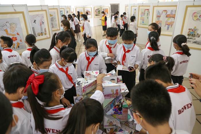 為豐富學(xué)生的學(xué)習(xí)生活,帶來(lái)一場(chǎng)漫畫文化盛宴,10月30日上午,由中山市婦女聯(lián)合會(huì)、中山市文化廣電旅游局、中山市教育和體育局主辦,廣東博文學(xué)校承辦的中山市第十二屆漫畫創(chuàng)意臨摹大賽(外來(lái)務(wù)工人員子女專場(chǎng))獲獎(jiǎng)作品東部片區(qū)巡展開(kāi)幕式在廣東博文學(xué)校綜合樓401舉行,中山市婦女兒童活動(dòng)中心副主任陽(yáng)艷峰、中山漫畫館館長(zhǎng)鄒智怡、廣東博文學(xué)校校長(zhǎng)張海經(jīng)、小學(xué)部校長(zhǎng)徐曙、藝體處主任王萍出席活動(dòng),小學(xué)部師生參與活動(dòng)。
