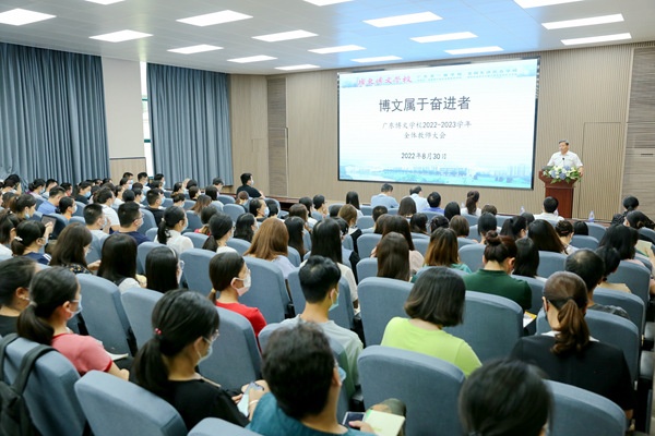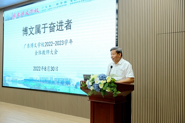 又是一年開(kāi)學(xué)季,博文湖畔氣象新。2022年8月30日下午,廣東博文學(xué)校2022—2023學(xué)年度上學(xué)期第一次全校教師大會(huì)在綜合樓407會(huì)議室召開(kāi),會(huì)議由張海經(jīng)校長(zhǎng)主持。