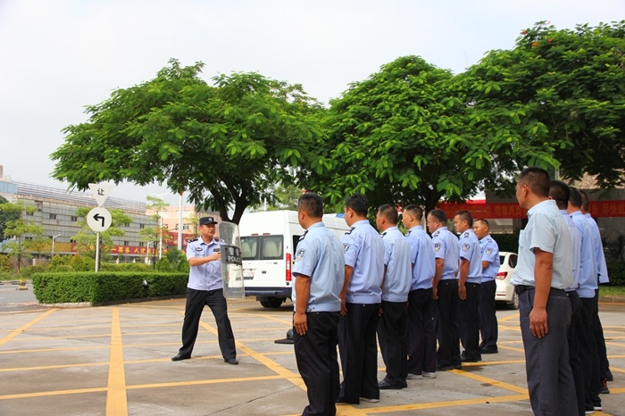 首先蘇警官在學校副校長任德利、總務主任馮國輝的陪同下,對學校保安隊進行反恐防暴政策與形勢方面的宣講。蘇警官主要講述了預防與快速反應的問題,然后現場示范教學鋼叉、盾牌、木棍、丁字棍等器械的使用,還有如何佩戴頭盔、防刺服、防刺手套等裝備。經過專業的培訓后,學校保安隊均表示受益匪淺。