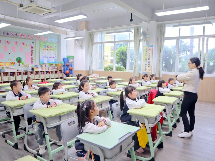 接著寶貝們還到小學部的課室親身體驗小學課堂。小學老師的上課方式讓孩子們感到新奇無比,對幼兒園的寶貝而言,小學是一個既陌生又神奇的地方。他們滿懷期待的走進教室,坐在座位上開心地參與課堂活動,回答老師的提問,與小伙伴積極互動,激動和好奇在臉上洋溢出來。除了上課,寶貝們還觀看了哥哥姐姐們莊嚴的升旗儀式、精神抖擻的早操等,寶貝們對哥哥姐姐的表現都豎起大拇指,更期待自己能成為一名優秀的小學生了!