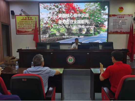 為更好地貫徹省黨代會精神,6月17日,校黨委邀請中共中山市委黨校周耕教授給全體黨員講授學習貫徹第十三屆黨代會精神的專題黨課。周耕教授以《緊跟核心穩中求進 奮力走在全國前列》為題,以深厚的學術修養、扎實的專業功底,深入淺出地為全體黨員介紹了省第十三次黨代會的基本情況、召開的重要意義,緊扣李希書記所作的大會報告,回顧了過去五年廣東取得的一系列成就及其重要經驗,分析了發展面臨的短板,聚焦黨代會為未來五年的工作部署,介紹了未來發展的總體要求、主要目標和深入實施“1+1+9”的工作部署。周教授還結合中山實際和市第十五次黨代會精神,就如何深入學習貫徹省黨代會精神、充分用好省級改革創新實驗區進行了分析講解。
