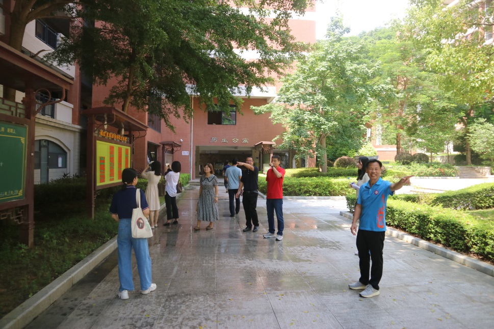 隨后,在劉浩主任和陳建科副主任的帶領下,永安中學德育教師隊伍參觀了學校校園。在參觀過程中,劉浩主任和陳建科副主任詳細介紹了學校的宣傳欄等校園文化建設,宿舍的設施設備、日常管理,以及學生活動等。這些內容引起了永安中學同仁的濃厚興趣,老師們一邊參觀一邊熱烈交流討論。