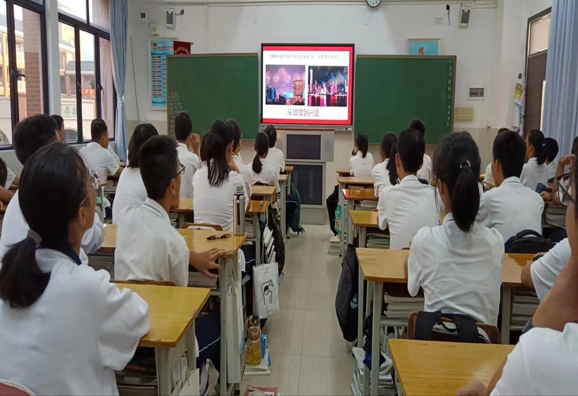 隨后丁主任用圖片的形式回顧了桂山中學開展愛國主義教育的重要活動場景,讓同學們牢記愛國、時刻愛國并以行動報國。在激發(fā)同學們愛國主義情懷的同時,丁主任繼續(xù)采取多種形式向同學們展現(xiàn)新中國成立70多年以來祖國發(fā)生的翻天覆地的變化,特別是同學們生活方面發(fā)生的日新月異的變化,從身邊感受到中國的繁榮昌盛。
